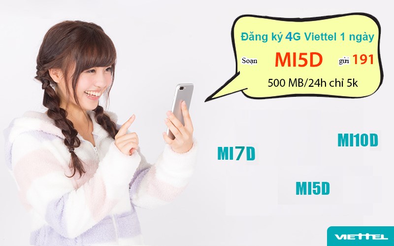 Ngoài ra, bạn cũng có thể dễ dàng thực hiện đăng ký qua ứng dụng My Viettel hoặc gọi *098# và làm theo hướng dẫn. Gói cước này rất phù hợp cho những chuyến đi ngắn ngày hoặc khi bạn chỉ cần gói dữ liệu nhỏ cho một ngày sử dụng. Hãy nhanh tay đăng ký và trải nghiệm internet tốc độ cao từ Viettel!