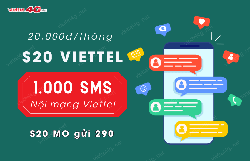 Nếu bạn là một người thường xuyên nhắn tin và sử dụng dịch vụ di động, gói cước S20 của Viettel sẽ là sự lựa chọn tuyệt vời dành cho bạn. Chỉ với 20.000 đồng, bạn sẽ nhận ngay 1000 tin nhắn SMS nội mạng miễn phí sử dụng trong 30 ngày. Đây là gói cước giúp tiết kiệm chi phí nhắn tin dành cho những ai nhận được nhiều thông điệp từ bạn bè, gia đình.