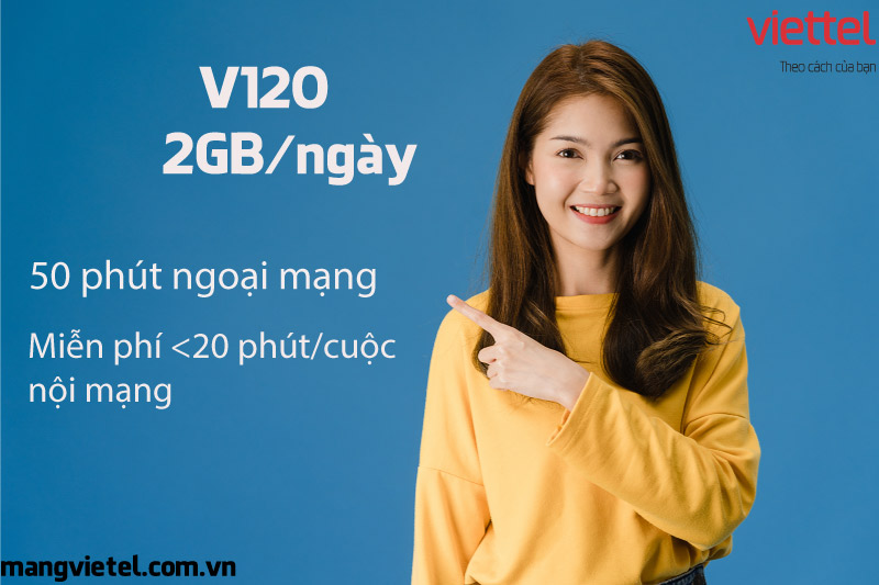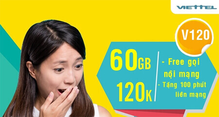 Gói cước V120 của Viettel mang đến cho bạn những ưu đãi hấp dẫn với giá chỉ 120.000đ cho 30 ngày sử dụng. Bạn sẽ nhận được 120Gb data tốc độ cao, giúp bạn thoải mái lướt web và tải ứng dụng. Mỗi ngày, bạn có 4Gb data tốc độ cao, và bên cạnh đó, bạn cũng được miễn phí gọi nội mạng dưới 20 phút.