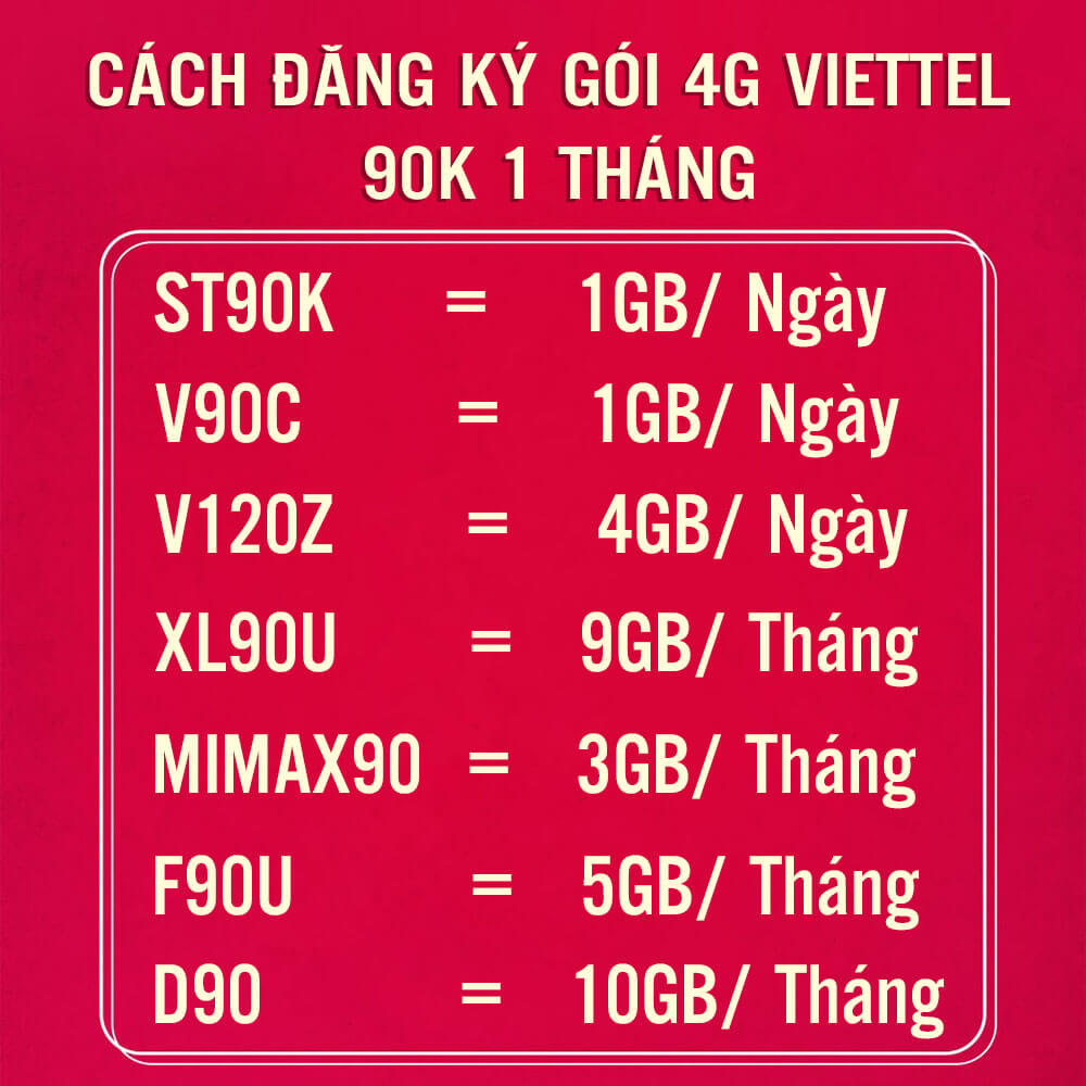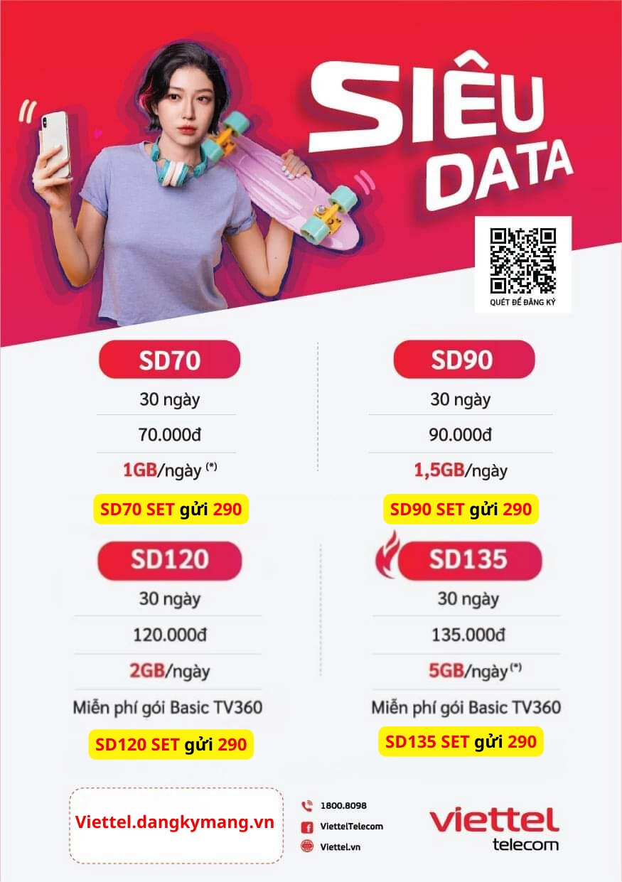 Đăng ký gói cước 4G Viettel rất đơn giản và nhanh chóng, giúp bạn trải nghiệm internet tốc độ cao mọi lúc, mọi nơi. Một trong những gói cước phổ biến là gói 90K với 45GB data, bạn chỉ cần soạn tin nhắn “SD90 NET” gửi 290 để đăng ký. Nếu cần nhiều dữ liệu hơn, gói 135K với 150GB cũng là một lựa chọn tuyệt vời.