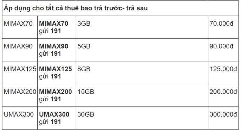 Ngoài ra, bạn có thể tham khảo một số gói cước phổ biến như gói ST5K với giá chỉ 5.000 VNĐ, giúp bạn có 500MB tốc độ cao. Đăng ký gói này rất dễ, chỉ cần gửi tin nhắn “ST5K” đến 191 là xong! Nếu bạn muốn trải nghiệm 4G/5G trong một tháng, chỉ cần soạn “ST70K” và gửi 191.
