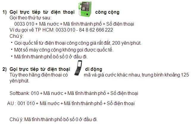 Đối với điện thoại di động, việc gọi điện cũng tương tự như vậy. Chỉ cần bấm 00 + mã quốc gia + mã vùng + số điện thoại bạn muốn liên hệ. Sự phổ biến của điện thoại di động khiến nhiều người lựa chọn cách này vì tính linh hoạt và nhanh chóng.