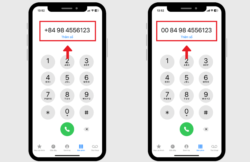 Cấu trúc số điện thoại quốc tế theo quy tắc E.164 bao gồm mã quốc gia, mã vùng và số máy điện thoại. Ví dụ, nếu bạn muốn gọi đến số di động 0939 741 xxx, bạn sẽ nhấn +840939741xxx hoặc 0084939741xxx. Cách này áp dụng cho cả số di động và số cố định.