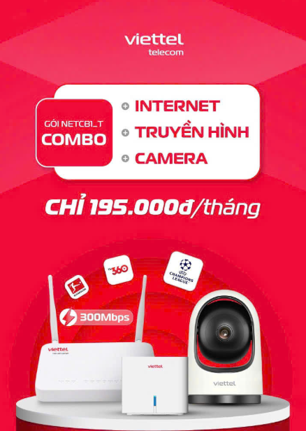 Hơn nữa, combo còn bao gồm một camera trong nhà và modem Wifi 6, giúp bạn quản lý an ninh cho ngôi nhà và sử dụng Internet với tốc độ cao nhất. Việc đăng ký cũng rất đơn giản, bạn có thể thực hiện qua tổng đài hoặc trực tiếp tại các cửa hàng Viettel trên toàn quốc.