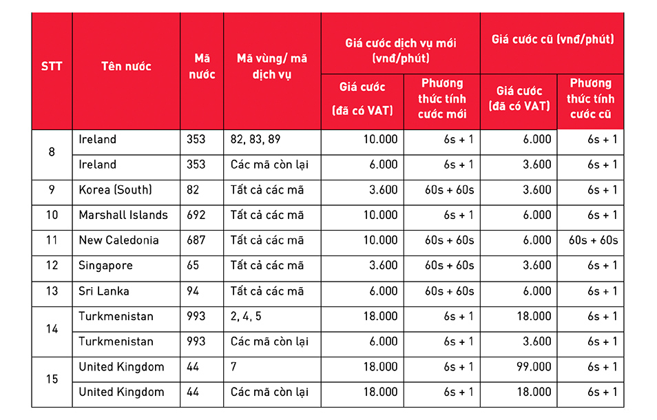 Ngoài ra, Viettel cũng đã quy hoạch lại mã vùng và phương thức tính cước gọi. Đặc biệt, họ đã thay đổi cách tính từ 6 giây đầu tiên sang 60 giây, giúp khách hàng dễ dàng quản lý chi phí khi gọi đến các quốc gia khác. Đừng quên rằng khi gọi quốc tế, bạn cần phải bấm + [Mã quốc gia] + [Mã vùng] + [Số điện thoại] hoặc sử dụng dấu “+” trước mã quốc gia.