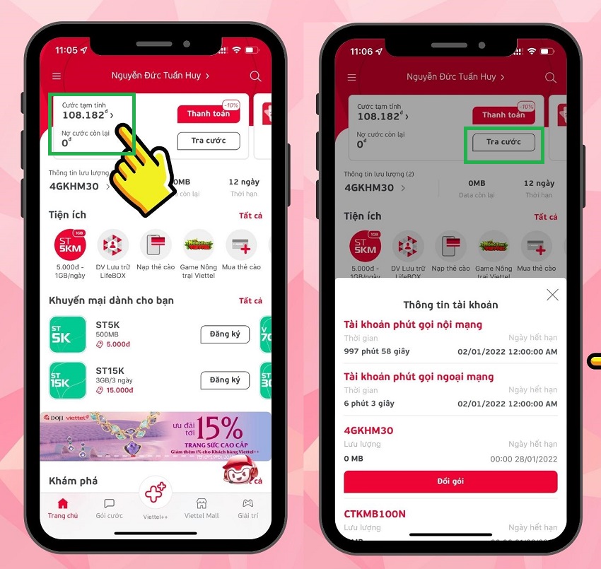 Đặc biệt, để biết chính xác cước phát sinh từ các dịch vụ như gọi, SMS, hoặc data 3G/4G, hãy truy cập My Viettel. Mọi thông tin chi tiết về cước sẽ được hiển thị rõ ràng trên màn hình, giúp bạn nắm bắt tình hình tài khoản một cách thuận lợi. Hãy lưu ý để không bị lỡ mất thời hạn thanh toán nhé!