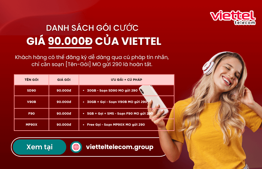 Bạn đang tìm kiếm một gói cước vừa tiết kiệm vừa đảm bảo nhu cầu sử dụng Internet ổn định mỗi tháng? Gói 90K Viettel chính là lựa chọn lý tưởng dành cho bạn. Không chỉ mang lại ưu đãi về dung lượng data lớn, gói 90K Viettel còn có nhiều tiện ích vượt trội phù hợp với đa dạng đối tượng khách hàng. Nếu bạn chưa biết cách đăng ký, cú pháp thực hiện hay muốn biết thêm chi tiết về điều kiện sử dụng và cách kiểm tra lưu lượng, bài viết dưới đây sẽ giúp bạn giải đáp tất cả những thắc mắc liên quan đến gói 90K Viettel.