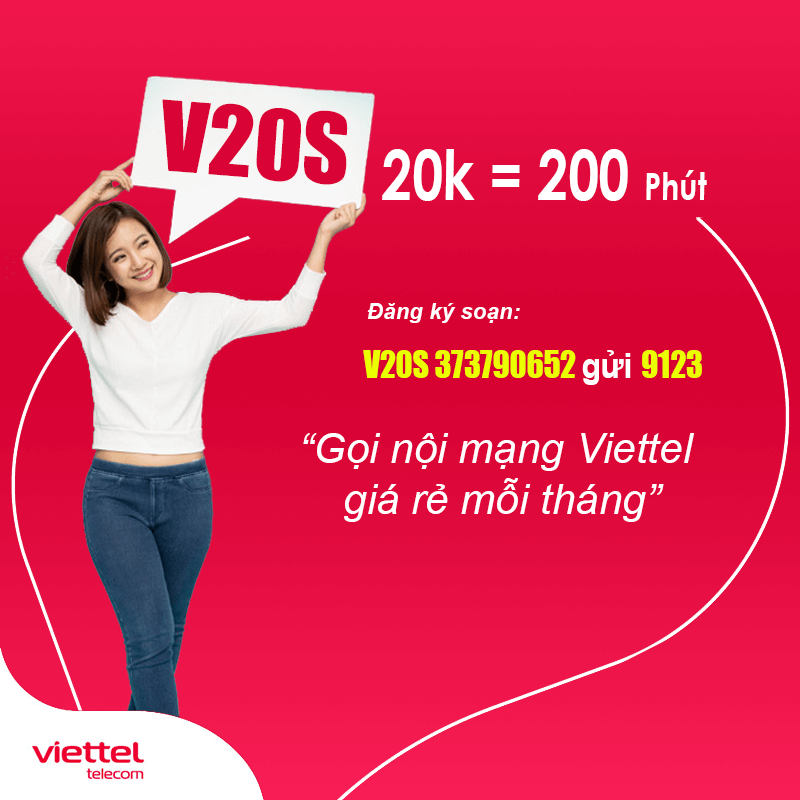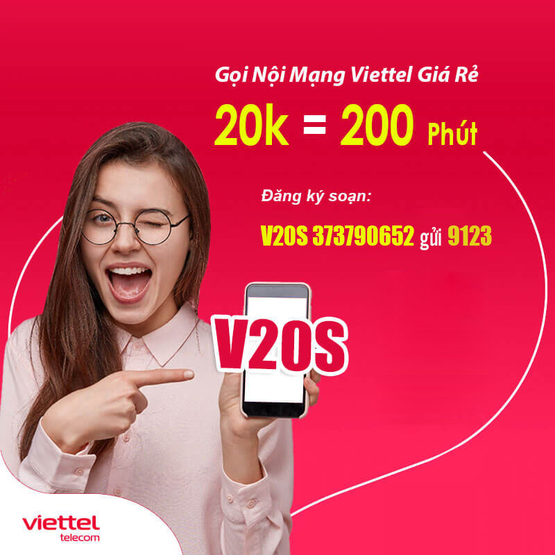 Gói V20S là một lựa chọn tuyệt vời cho những ai thường xuyên gọi điện cho bạn bè và người thân trong cùng mạng Viettel. Hãy đăng ký ngay hôm nay để không bỏ lỡ những ưu đãi hấp dẫn này!