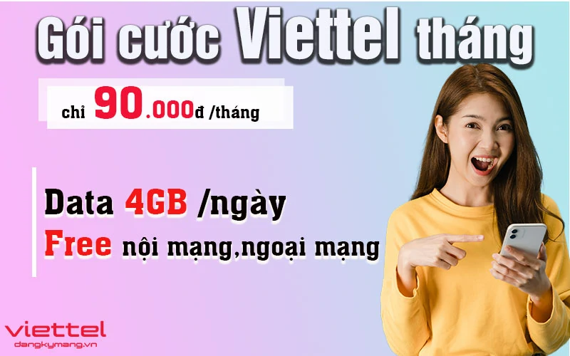 Gói cước 90K Viettel là sự lựa chọn tuyệt vời cho những ai thường xuyên sử dụng Internet di động. Với giá chỉ 90.000 đồng mỗi tháng, bạn sẽ nhận được 4GB dữ liệu mỗi ngày, tương đương 120GB trong một tháng. Điều này thực sự lý tưởng cho những người cần lướt web, xem video hay sử dụng mạng xã hội liên tục.
