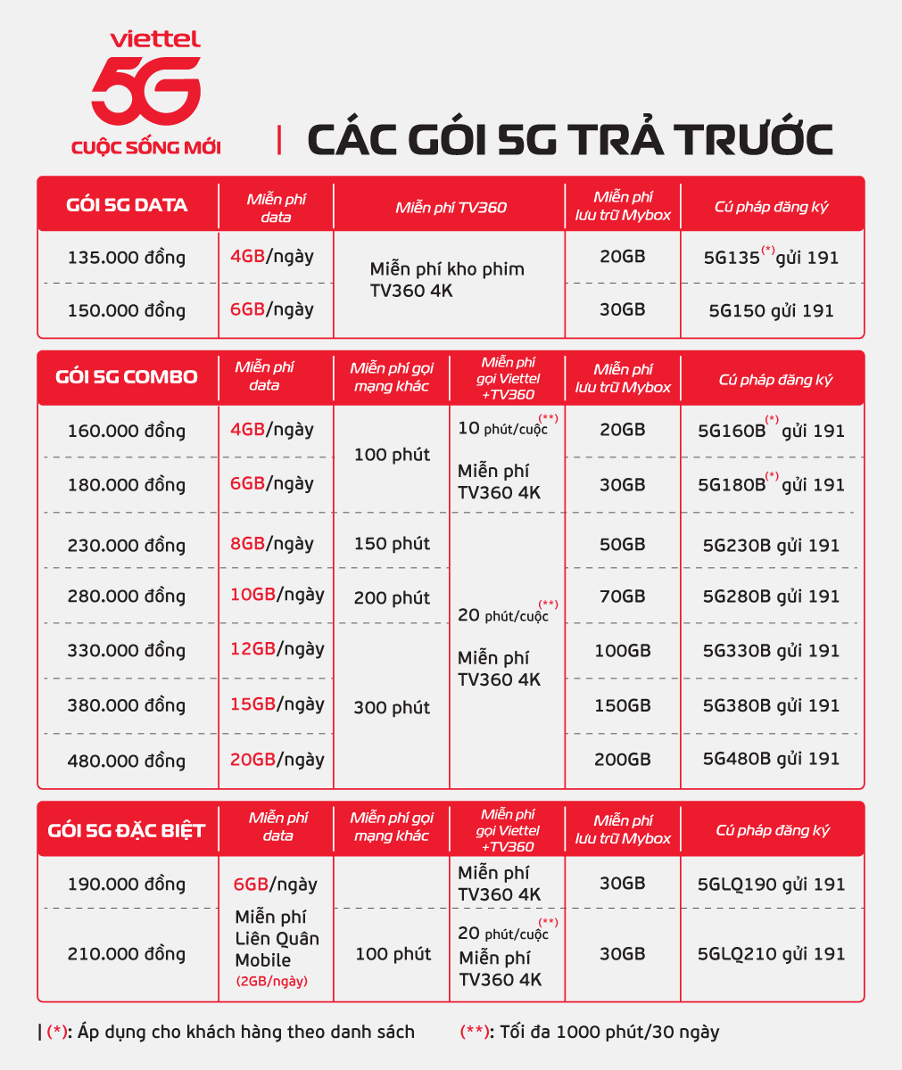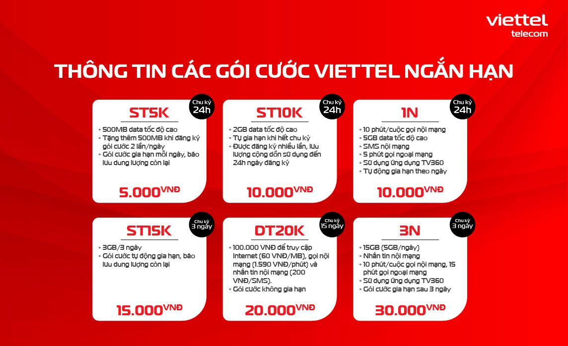 Để đăng ký các gói cước này, bạn chỉ cần gọi đến tổng đài 290 hoặc thực hiện trên ứng dụng My Viettel. Với những ưu đãi và tiện ích này, Viettel chắc chắn sẽ mang đến cho bạn trải nghiệm liên lạc tuyệt vời nhất.