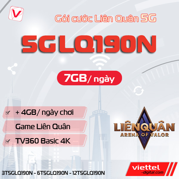 Nếu bạn là một fan cứng của Liên Quân Mobile và đang tìm kiếm gói cước phù hợp của Viettel, gói 5GLQ190N chắc chắn là lựa chọn lý tưởng. Gói cước này cung cấp tới 210GB data tốc độ cao mỗi tháng, tương đương 7GB/ngày, cùng với 120GB data chuyên dụng cho game Liên Quân, giúp bạn thoải mái trải nghiệm mà không lo ngại về dung lượng.