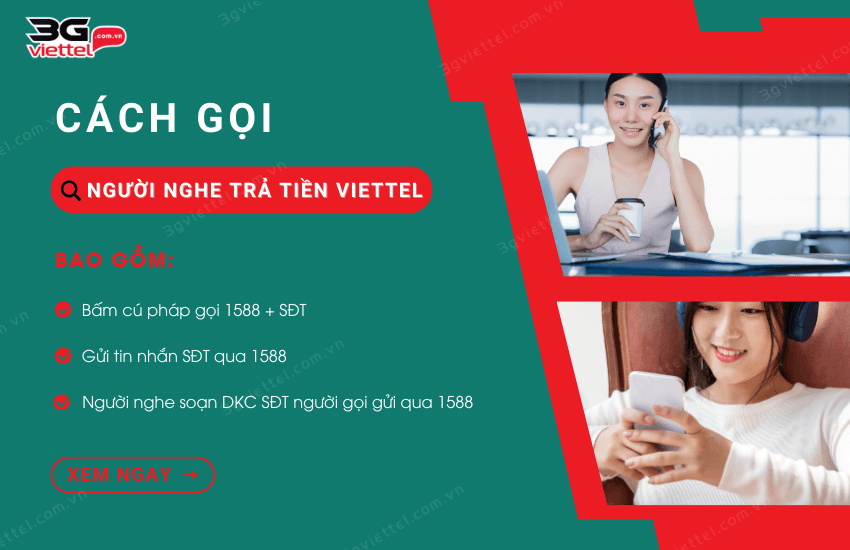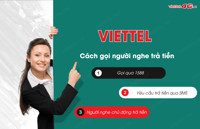 Gọi người nghe trả tiền là một dịch vụ tiện lợi mà nhiều người dùng hiện nay rất ưa chuộng. Để sử dụng dịch vụ này, A chỉ cần soạn tin “SĐTthuêbaoB” gửi đến tổng đài 1588. Sau đó, B sẽ nhận được một thông báo yêu cầu xác nhận việc trả phí cuộc gọi. Nếu B đồng ý trả tiền cho tất cả cuộc gọi từ A, chỉ cần soạn tin “Y” gửi 1588.