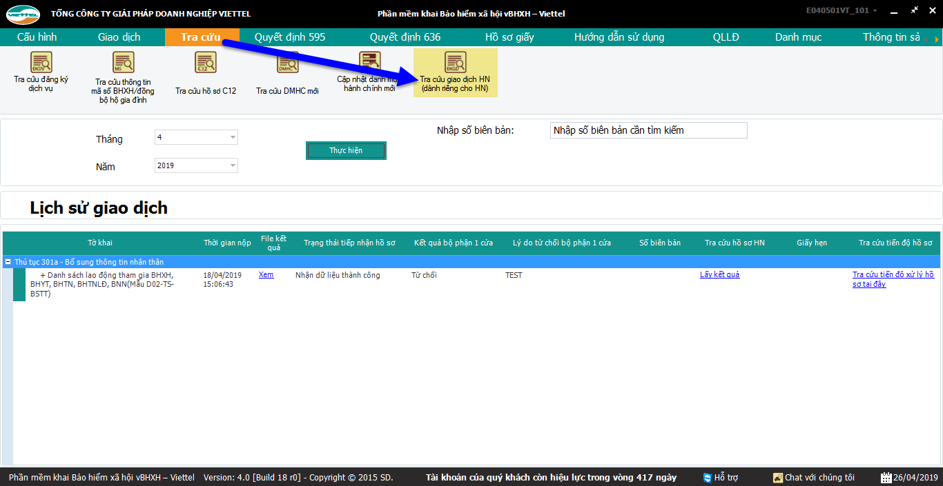 Sau khi đăng nhập, bạn có thể vào menu “Tra cứu” và chọn “Tra cứu giao dịch HN” để tìm kiếm các thông tin cụ thể. Nếu bạn muốn xem lịch sử đăng ký BHXH, hãy chọn mục “ĐĂNG KÝ BHXH” và rồi vào “Lịch sử đăng ký”. Một cú nhấp chuột vào giao dịch cần tra cứu sẽ giúp bạn nắm bắt nhanh chóng thông tin cần thiết.