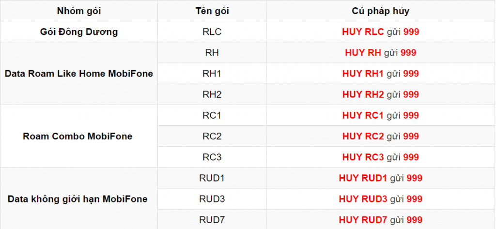 Ngoài ra, bạn còn có thể sử dụng tin nhắn SMS. Chỉ cần soạn tin HUY CVQT và gửi đến số 138. Hoặc nếu bạn đang sử dụng dịch vụ của MobiFone, bạn có thể soạn HUY Tên-gói gửi 999 để hủy gói cước chuyển vùng của mình. Thao tác này rất nhanh chóng và không mất phí.