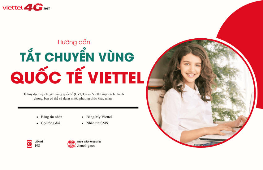 Nếu bạn đang sử dụng dịch vụ chuyển vùng quốc tế của Viettel và muốn hủy nó, có rất nhiều cách đơn giản để thực hiện. Đầu tiên, bạn có thể gọi đến tổng đài Viettel 198 tại Việt Nam (miễn phí) hoặc +84989198198 khi đang ở nước ngoài. Sau đó, chỉ cần làm theo hướng dẫn của tổng đài là bạn sẽ nhanh chóng hủy được dịch vụ.