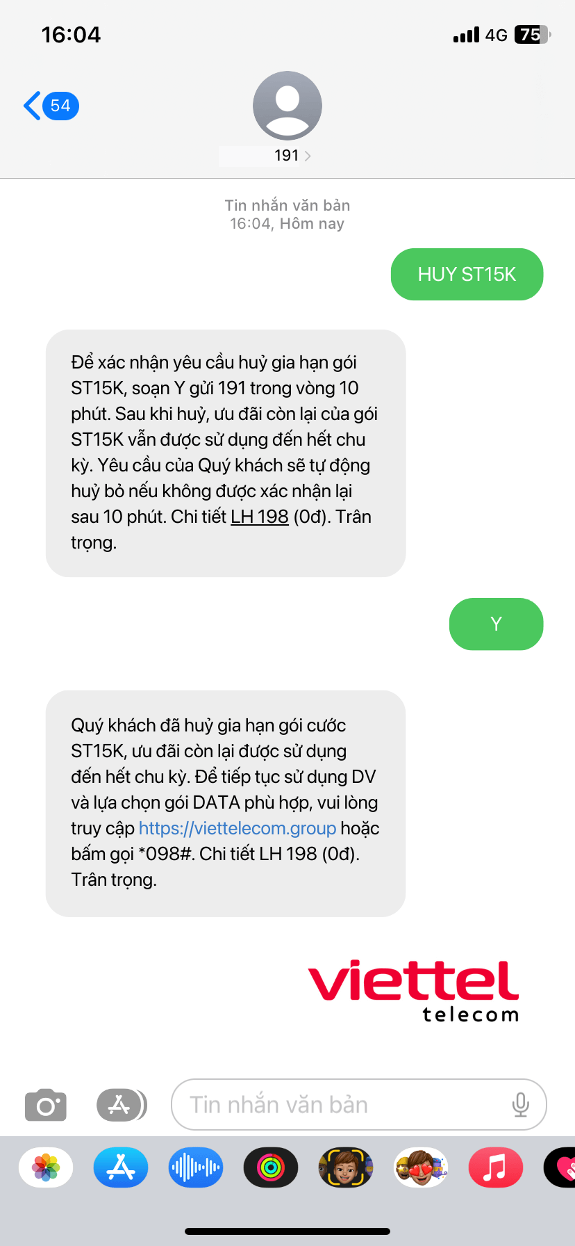 Nếu bạn muốn hủy gói cước, việc thực hiện cũng khá đơn giản. Bạn chỉ cần soạn tin nhắn theo mẫu: “HUYDATA [Tên-Gói]” và gửi đến số 191. Hoặc nếu bạn muốn tìm hiểu thêm, có thể gọi đến tổng đài hoặc trực tiếp đến cửa hàng giao dịch Viettel để được tư vấn. Tuy không hoàn tiền, nhưng bạn vẫn có thể dừng việc gia hạn gói cước sau 30 ngày.