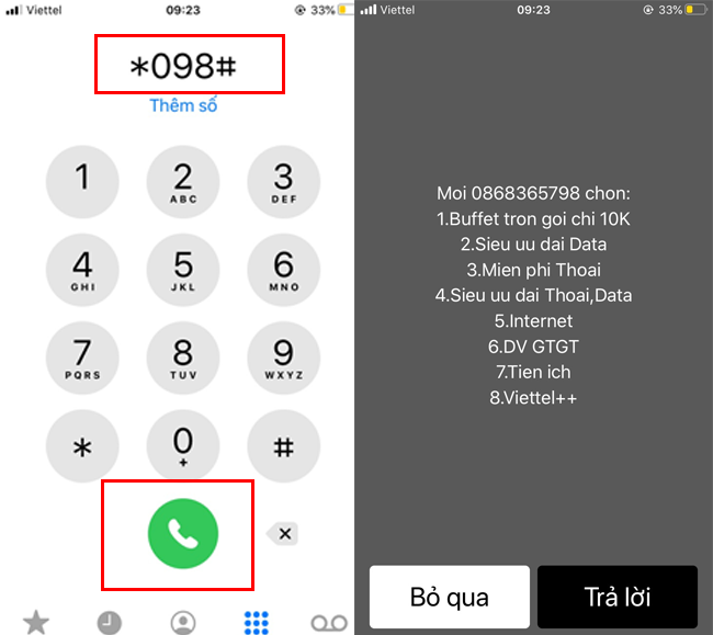 Nếu bạn không dùng ứng dụng My Viettel, còn một cách khác cũng rất tiện: bạn chỉ cần bấm *098# trên bàn phím điện thoại và nhấn “Gọi”. Hệ thống sẽ hiện ra các lựa chọn, cho phép bạn kiểm tra thông tin chi tiết về gói cước, bao gồm thời hạn và các ưu đãi khác.