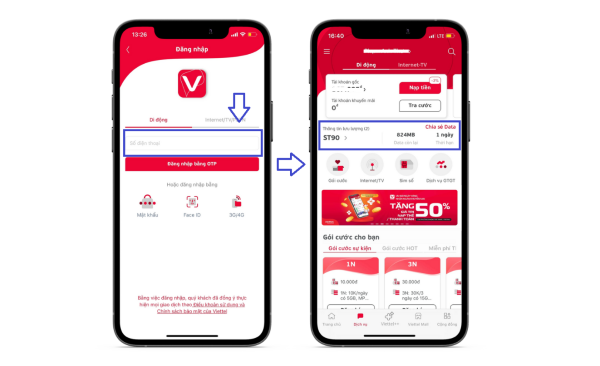 Ngoài ra, ứng dụng My Viettel cũng là một lựa chọn tuyệt vời. Bạn chỉ cần mở ứng dụng, nhập số điện thoại và mật khẩu, và sau khi đăng nhập, trang chủ sẽ hiển thị dung lượng 4G Viettel còn lại cho bạn.