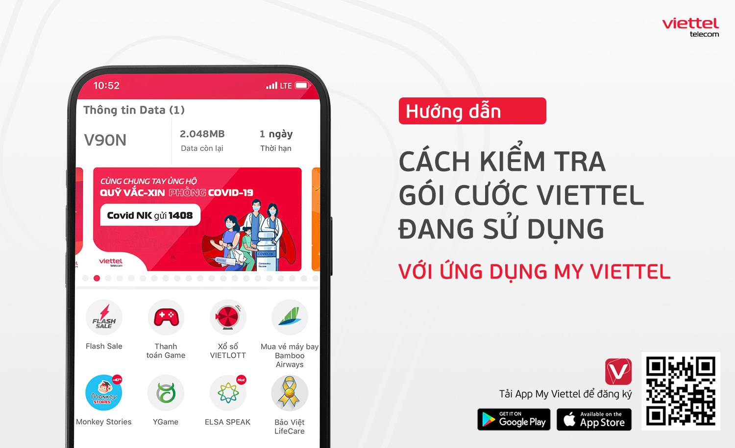 Nếu bạn là người thích sự tiện lợi, ứng dụng My Viettel cũng là một sự lựa chọn không tồi. Qua app, bạn có thể theo dõi dung lượng data và thời hạn gói cước một cách dễ dàng. Hơn nữa, bạn có thể gọi đến tổng đài 1800 8098 hoặc 198 để được hỗ trợ tra cứu thông tin gói cước nhanh chóng.
