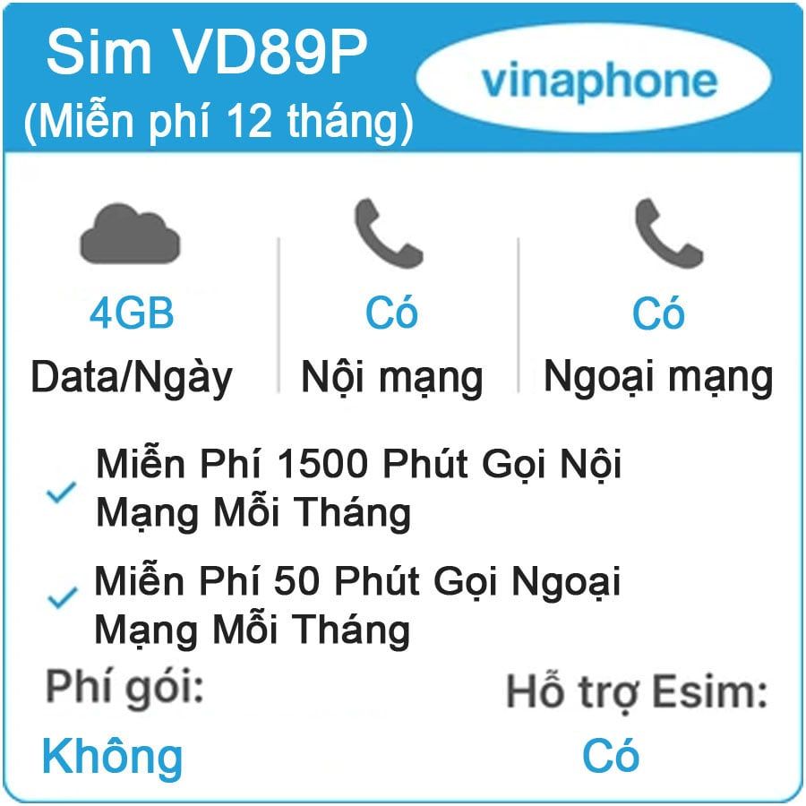 Nếu bạn đang tìm kiếm một gói sim 4G tiện lợi và tiết kiệm cho nhu cầu sử dụng hàng ngày, SIM VINA 4G GV89 chắc chắn là một lựa chọn tuyệt vời. Với dung lượng 4GB/ngày, bạn có thể thoải mái lướt web, xem phim hay chơi game mà không lo hết data. Đặc biệt, gói sim này có giá chỉ 848.000₫ cho một năm sử dụng mà không cần nạp tiền.