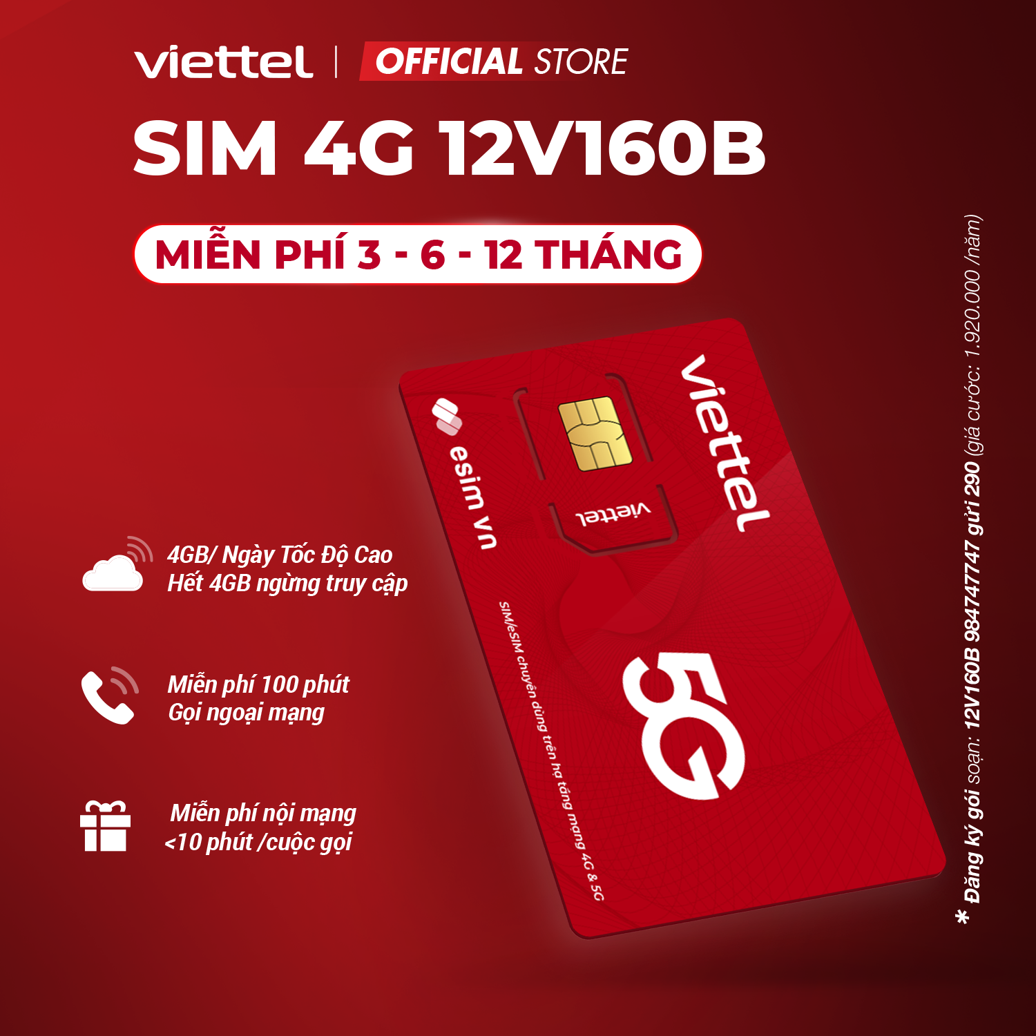 Nếu bạn đang tìm kiếm một gói SIM 4G lý tưởng cho nhu cầu sử dụng hàng ngày, gói SIM 4G 1 năm của Viettel với 4GB mỗi ngày chắc chắn là sự lựa chọn tuyệt vời. Với giá chỉ từ 1.620.000 đồng cho 12T5G135 hoặc 1.920.000 đồng cho gói 12T5G160B, bạn sẽ có đủ dung lượng để thoải mái lướt web, xem video, và chơi game mà không phải lo lắng về tốc độ.