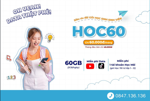 Sim học sinh sinh viên là loại SIM di động đặc biệt dành cho các bạn trẻ từ 12 đến 18 tuổi, đang theo học tại các trường học. Nắm bắt nhu cầu của học sinh, sinh viên trong thời đại công nghệ số, các nhà mạng như Viettel và VinaPhone đã cung cấp những gói cước hấp dẫn, giúp các bạn kết nối dễ dàng hơn.