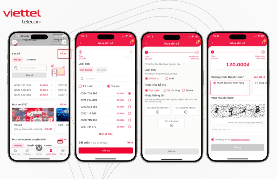 Quy trình đăng ký khá đơn giản. Bạn chỉ cần truy cập ứng dụng My Viettel, vào phần Viettel Shop, sau đó chọn mục Sim số, rồi lần lượt chọn Sim thường > Trả sau > Chọn số và gói cước phù hợp. Nếu bạn thích, cũng có thể gửi tin nhắn đến tổng đài 191 với tên gói cước mà bạn lựa chọn để đăng ký nhanh chóng.